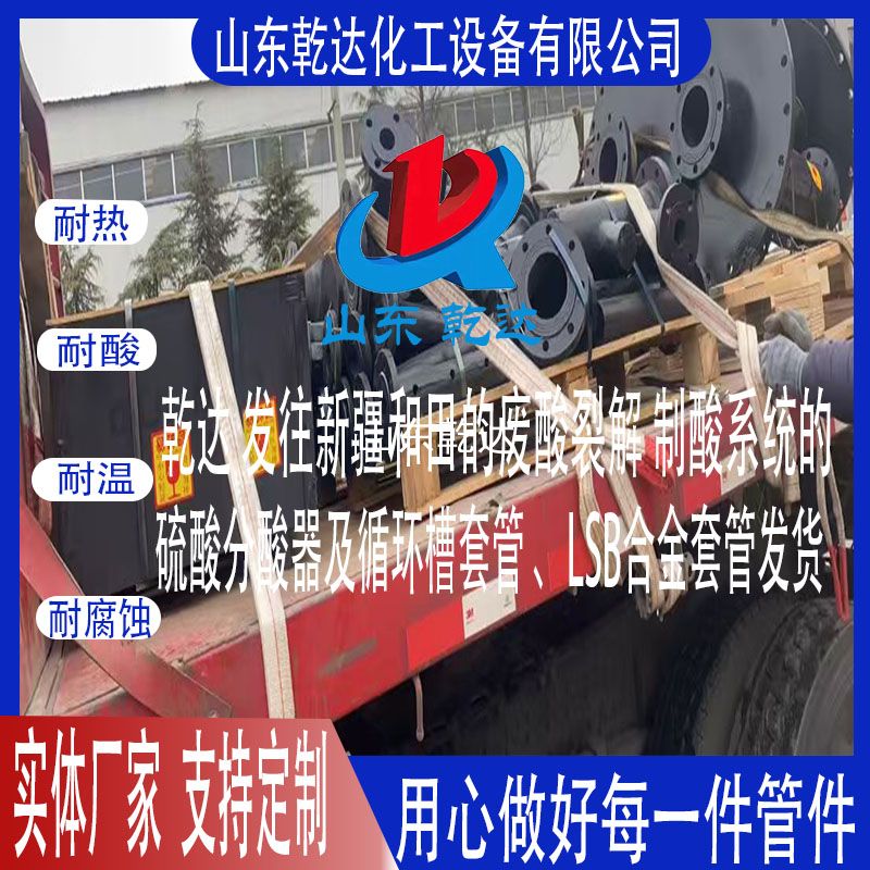 山東乾達(dá) 發(fā)往新疆和田廢酸裂解 制酸系統(tǒng)的 硫酸分酸器及循環(huán)槽套管、LSB合金套管發(fā)貨