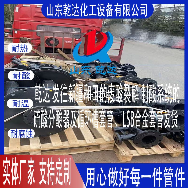 山東乾達(dá) 發(fā)往新疆和田廢酸裂解 制酸系統(tǒng)的 硫酸分酸器及循環(huán)槽套管、LSB合金套管發(fā)貨